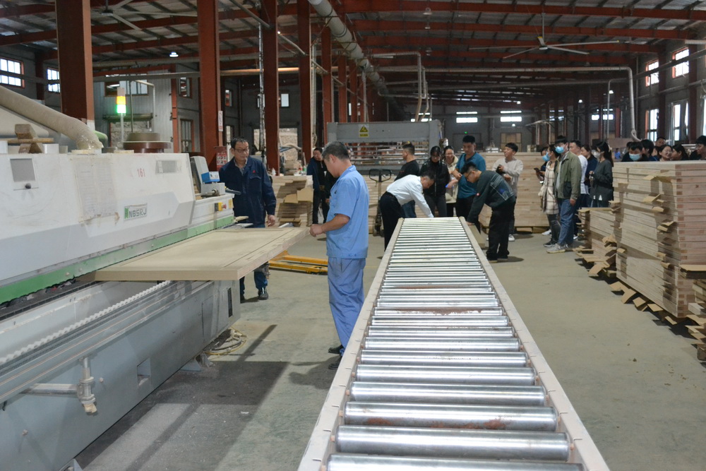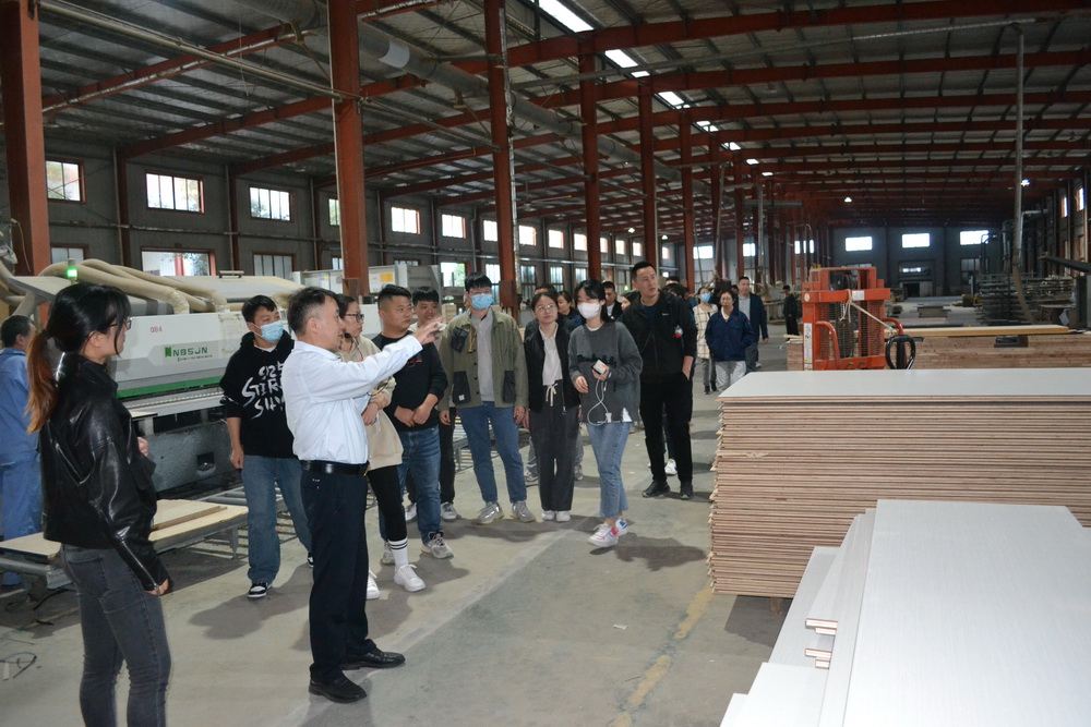 2022年11月26日一早,杭州分公司全體同事從杭州出發(fā),回到吉安木業(yè)慶元總部。車輛剛抵達,公司總部領導及同事已經等候在廠區(qū)大門。來不及太多的寒暄,大家馬不停蹄的投入到廠區(qū)參觀中去。對于大多數分公司同事來說,這還是第一次到工廠參觀。